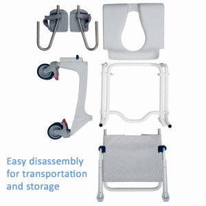 • Easily maneuvered in small spaces as well as allowing for a better fit over standard toilets for personal care