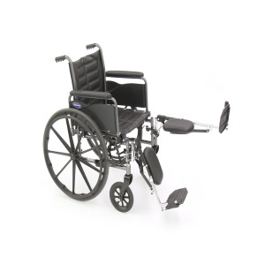 • 1 pair of footrests with durable aluminum footplates and padded calf pad